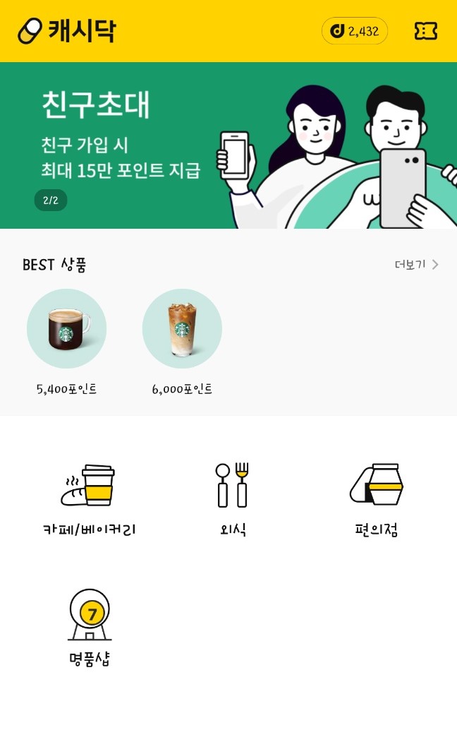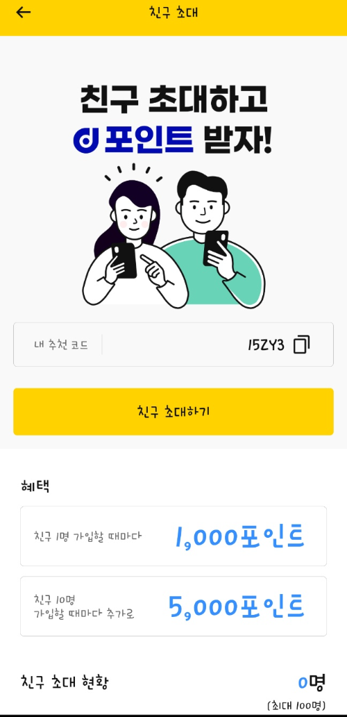 캐시닥은 아직까지 친구초대 포인트가 후하더라고요. 친구 1명이 가입할 때마다 1,000포인트를 주고 가입한 친구에게도 1,000포인트를 준다고 해요. 최대 100명까지 가입이 가능하답니다. 추천코드 입력하고 가입하는 게 서로서로에게 득이 되니 추천인코드 입력 안 할 이유가 없겠죠???